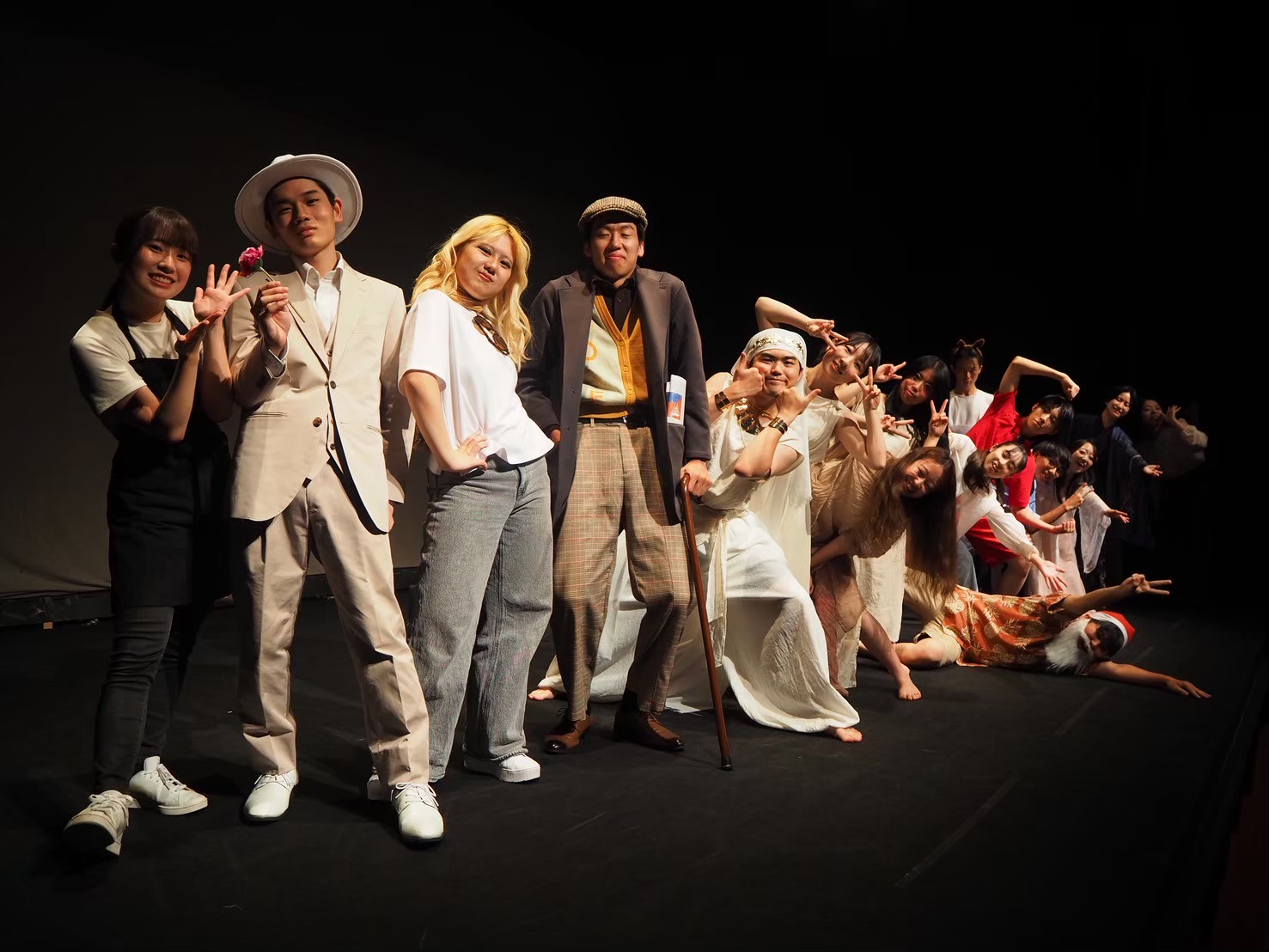 大学も仕事もさまざまな劇団員が集まり、オリジナル脚本を上演しています。母校の文化祭演劇のサポートや、外部イベントの出演などにも取り組んでいます。